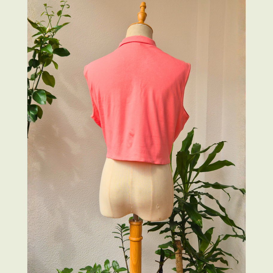 Fresh from Portuguese vintage vibes, this cool, light, vibrant sleeveless button-up top screams summer days—wear open for breezy casual or tied closed for party pop!